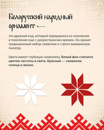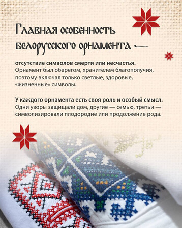 Асаблівасці беларускага арнаменту, важныя сімвалы і іх значэнні Вы можаце паглядзець у нашай галерэі: