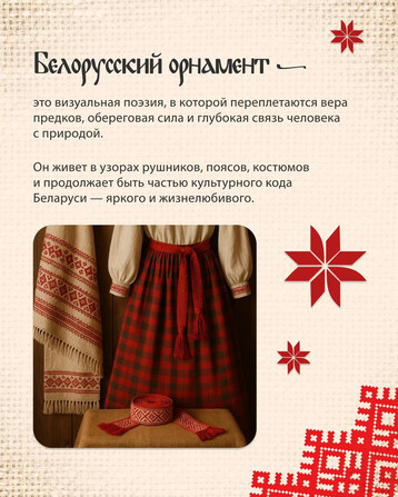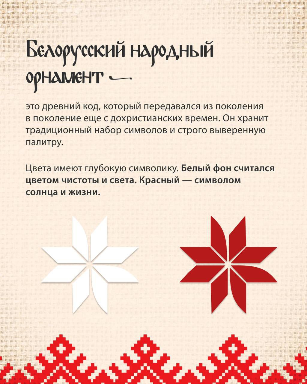 Беларускі арнамент — гэта цэлая мова, зашыфраваная ва ўзорах і колерах.