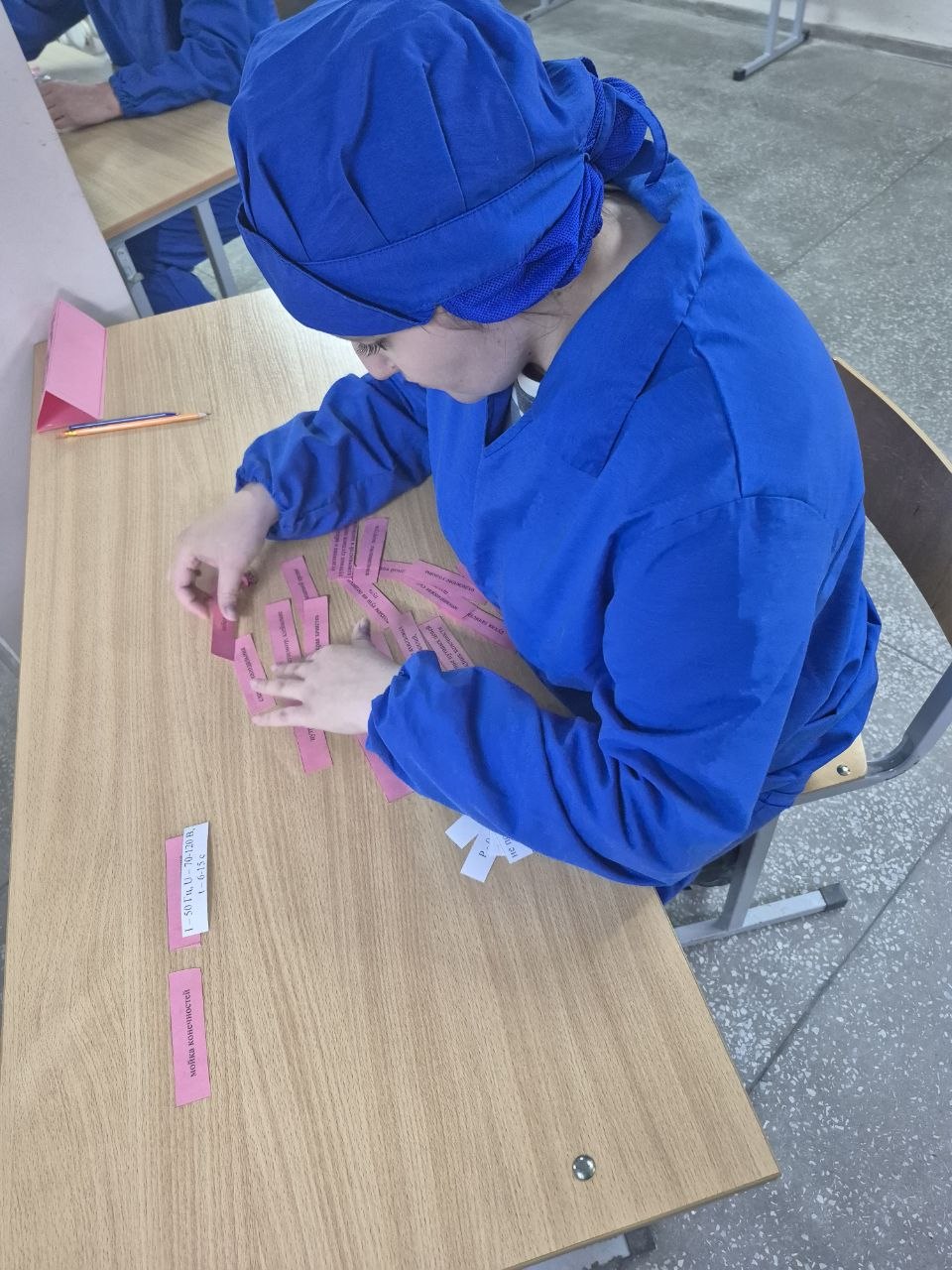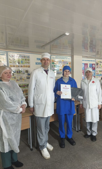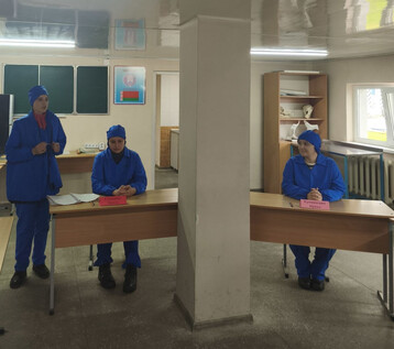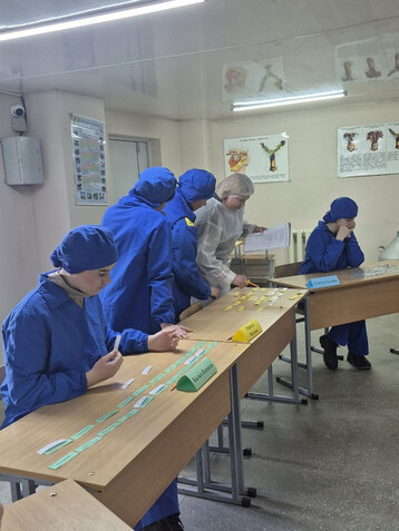 Теоретический этап проходил в учебном классе на территории мясокомбината и включал задания по учебным предметам профессионального компонента.