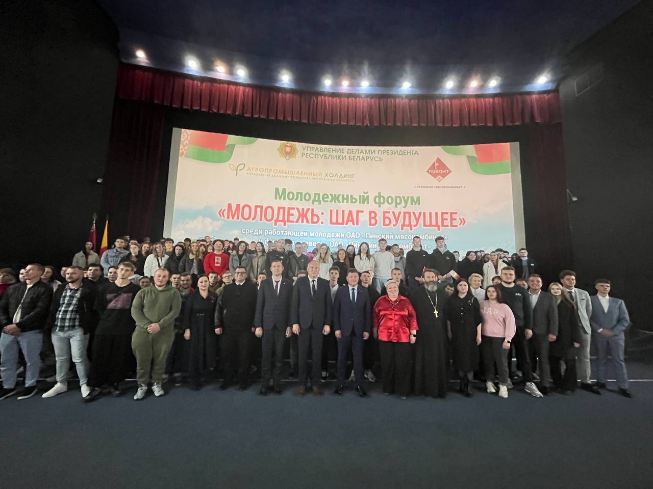 В целях укрепления взаимодействия ОАО «Пинский мясокомбинат» с учреждениями образования г. Пинска в сфере подготовки и привлечения молодых специалистов, формирования патриотического воспитания молодёжи, активной гражданской позиции, а также вовлечения в студотрядовское движение, на базе кинотеатра «Победа» состоялся Молодёжный форум работников организаций Управления делами Президента Республики Беларусь «Молодежь: Шаг в будущее».