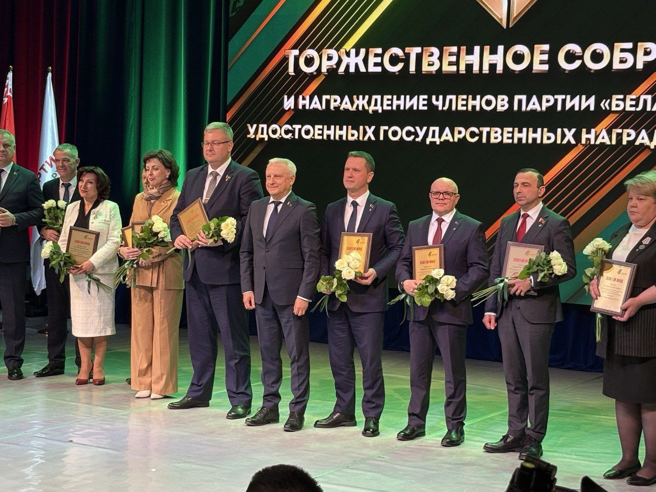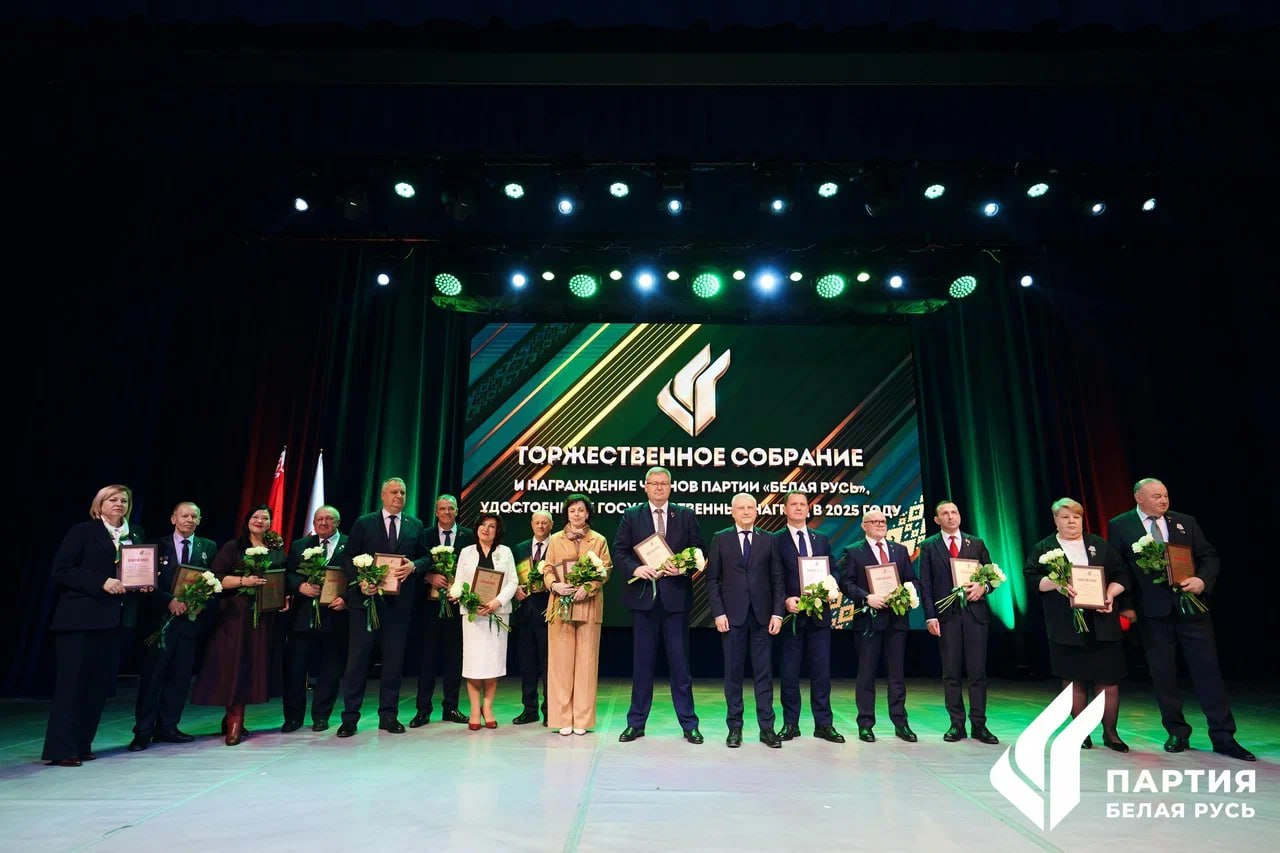 16 января во Дворце Республики состоялось торжественное собрание и церемония награждения членов Белорусской партии «Белая Русь», удостоенных государственных наград в 2025 году. В мероприятии приняла участие делегация города Пинска и Пинского района.