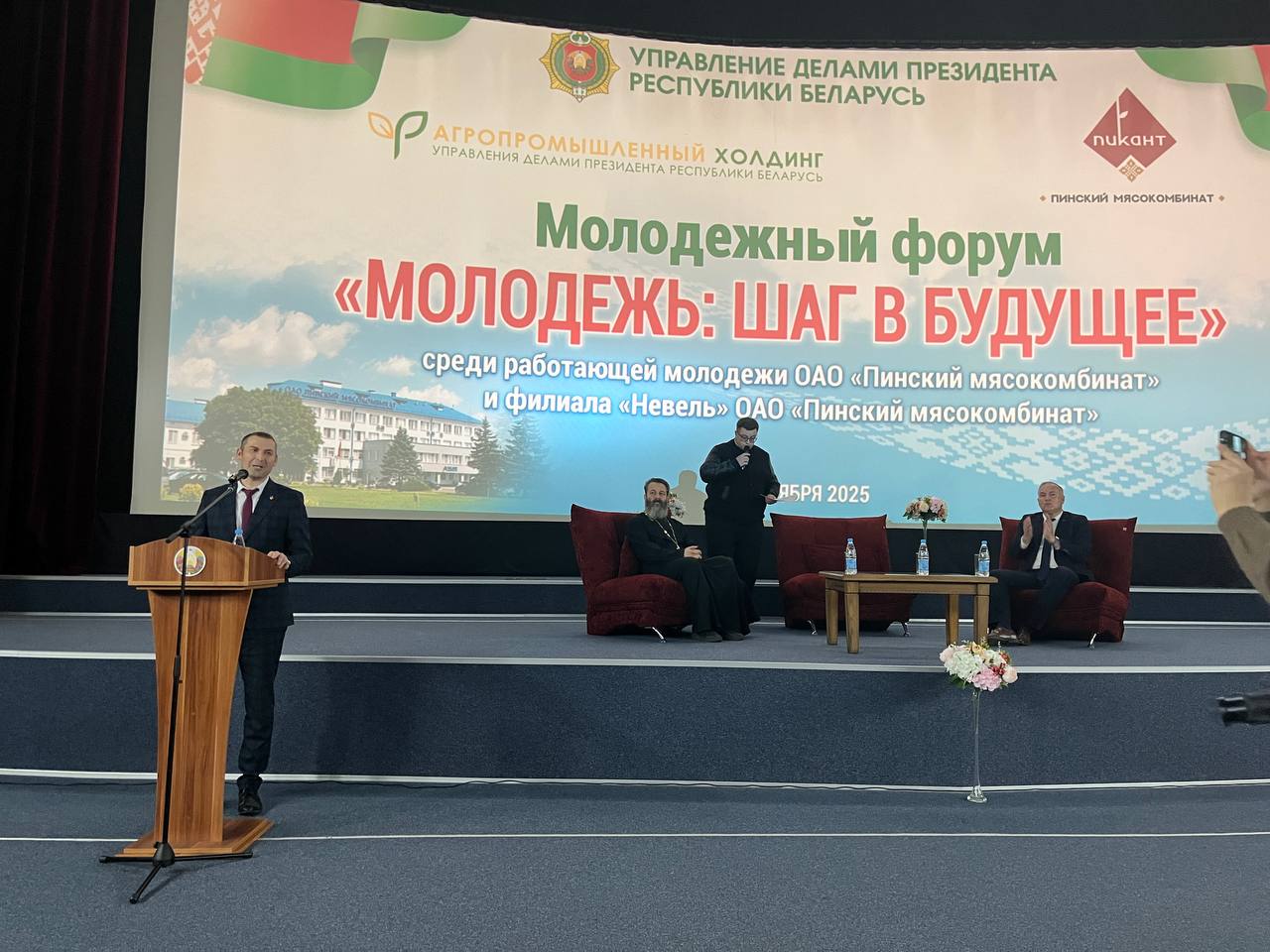 В целях укрепления взаимодействия ОАО «Пинский мясокомбинат» с учреждениями образования г. Пинска в сфере подготовки и привлечения молодых специалистов, формирования патриотического воспитания молодёжи, активной гражданской позиции, а также вовлечения в студотрядовское движение, на базе кинотеатра «Победа» состоялся Молодёжный форум работников организаций Управления делами Президента Республики Беларусь «Молодежь: Шаг в будущее».