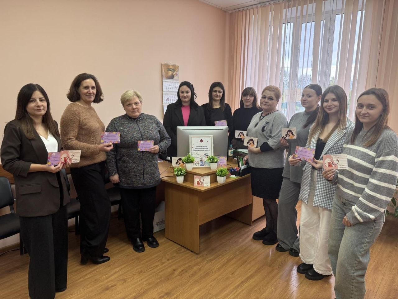Члены профсоюза и работники предприятия с удовольствием подписали яркие открытки, чтобы поздравить своих любимых и дорогих мам с праздником, выразив им свою благодарность и любовь.
