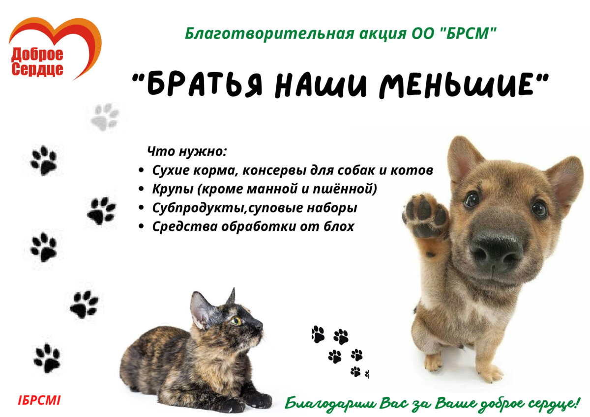 Уважаемые коллеги, до 16 апреля 2026 года проходит республиканская благотворительная акция «БРАТЬЯ НАШИ МЕНЬШИЕ» 🐶😻!