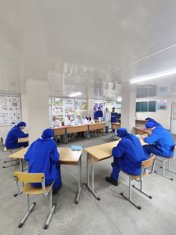 Теоретический этап проходил в учебном классе на территории мясокомбината и включал задания по учебным предметам профессионального компонента.