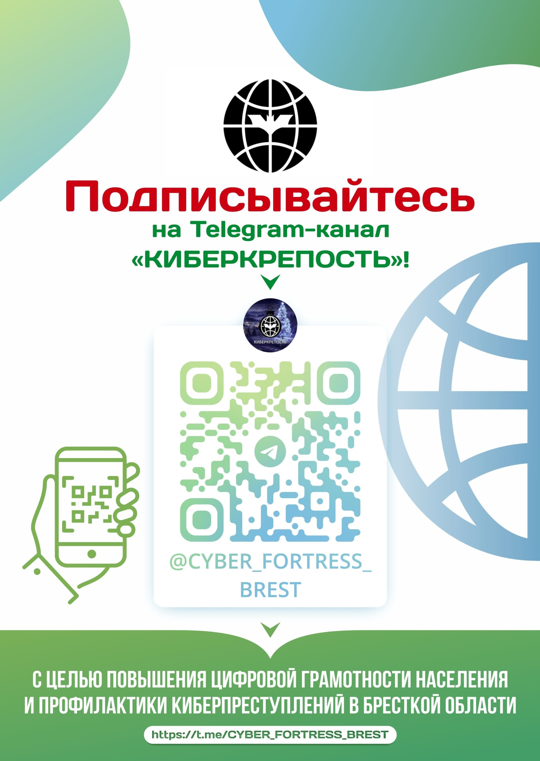 С целью повышения цифровой грамотности населения и профилактики киберпреступлений в Бресткой области, функционирует телеграм-канал «КИБЕРКРЕПОСТЬ».